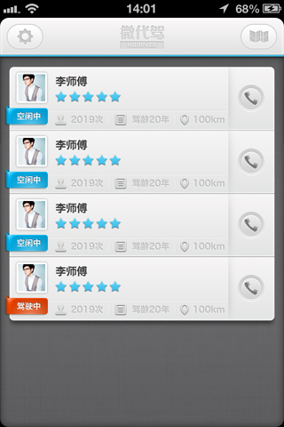 海量代驾司机,近才够快!微代驾平均到达客户时间15分钟,使用微代驾客户端直接召唤离您最近的5名司机,代驾,无需苦苦等待